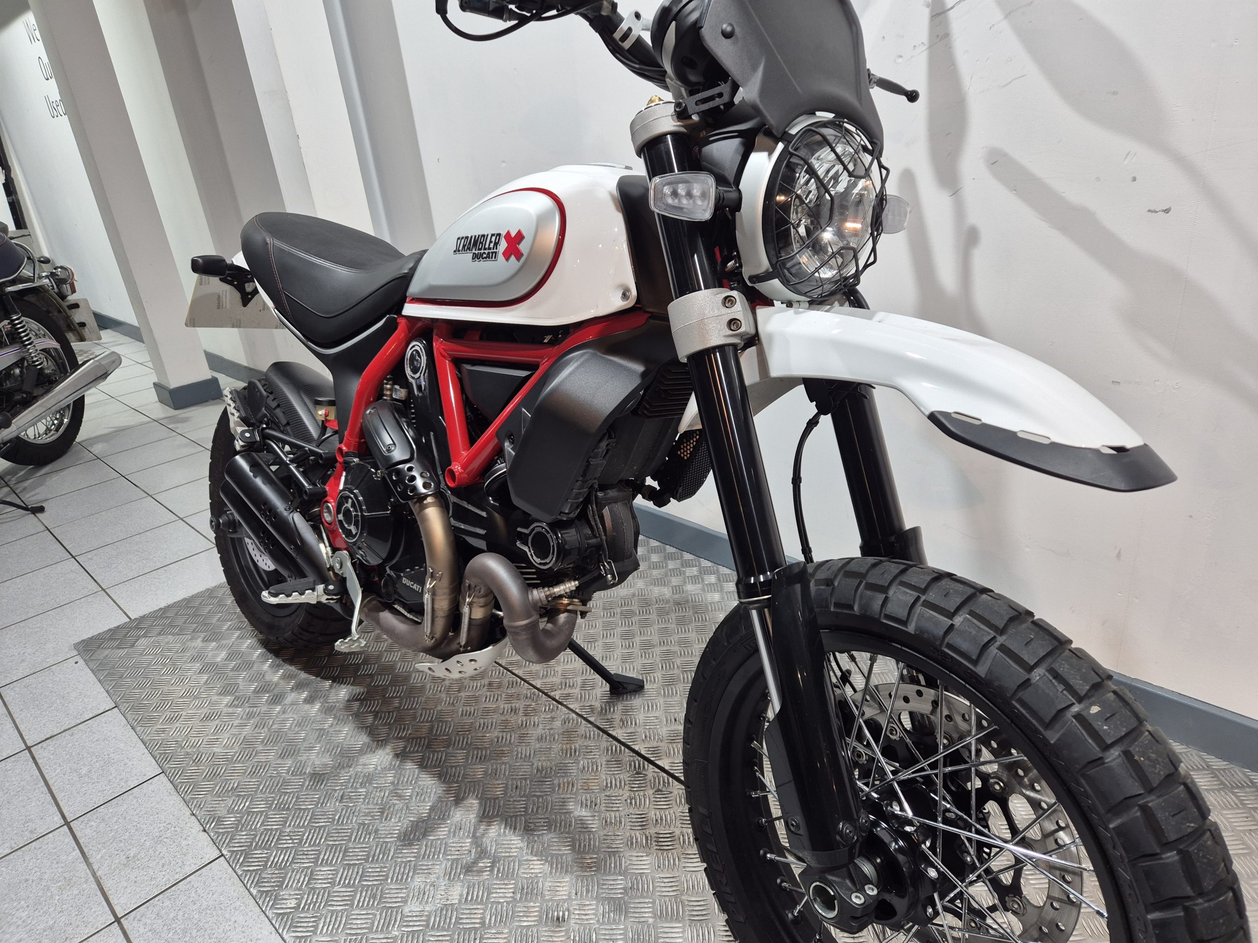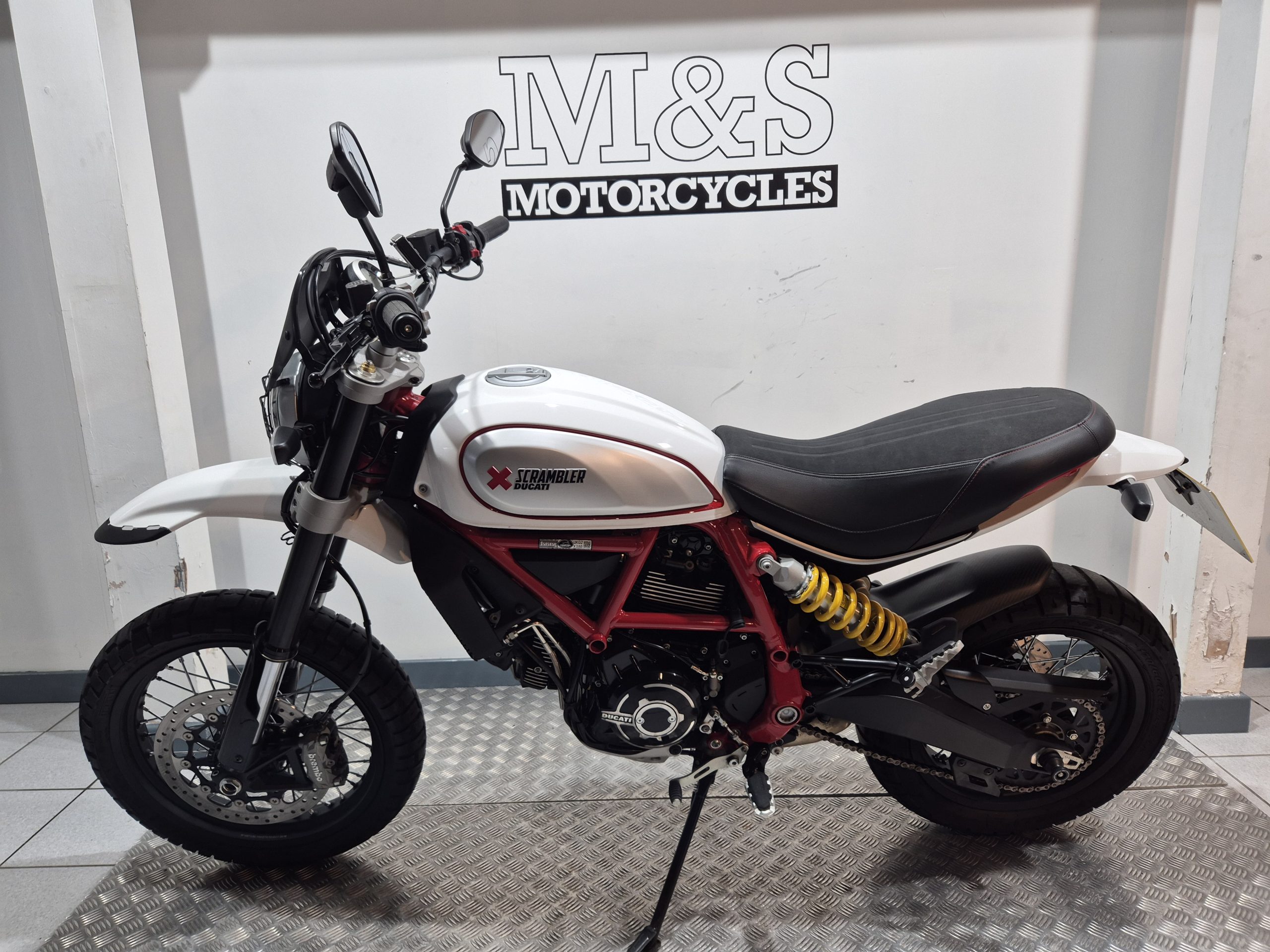 Ducati Scrambler Desert Sled. White, only 2414 miles, 3 owners from new. Comes with handbook, service book and 2 keys. Heated grips, screen, headlamp guard, tail tidy, rear hugger. Beautiful condition and comes with 12 months mot.