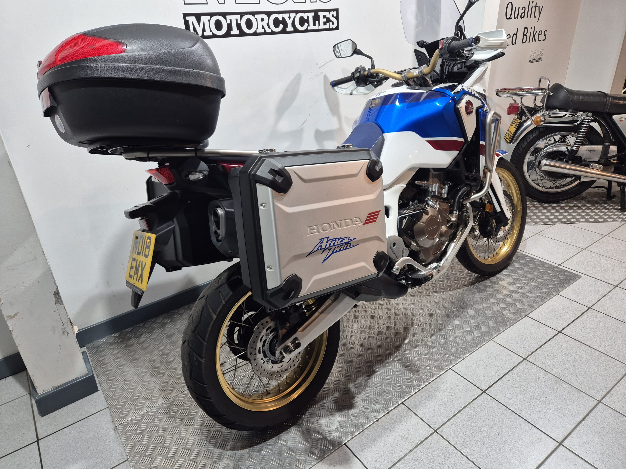 Enquire about thisHonda CRF1000 Africa Twin. Only 2 owners from new. In beautiful condition and having covered only 11527 miles. 3 box luggage system. Service history. Comes with handbook, service book and 2 keys.
