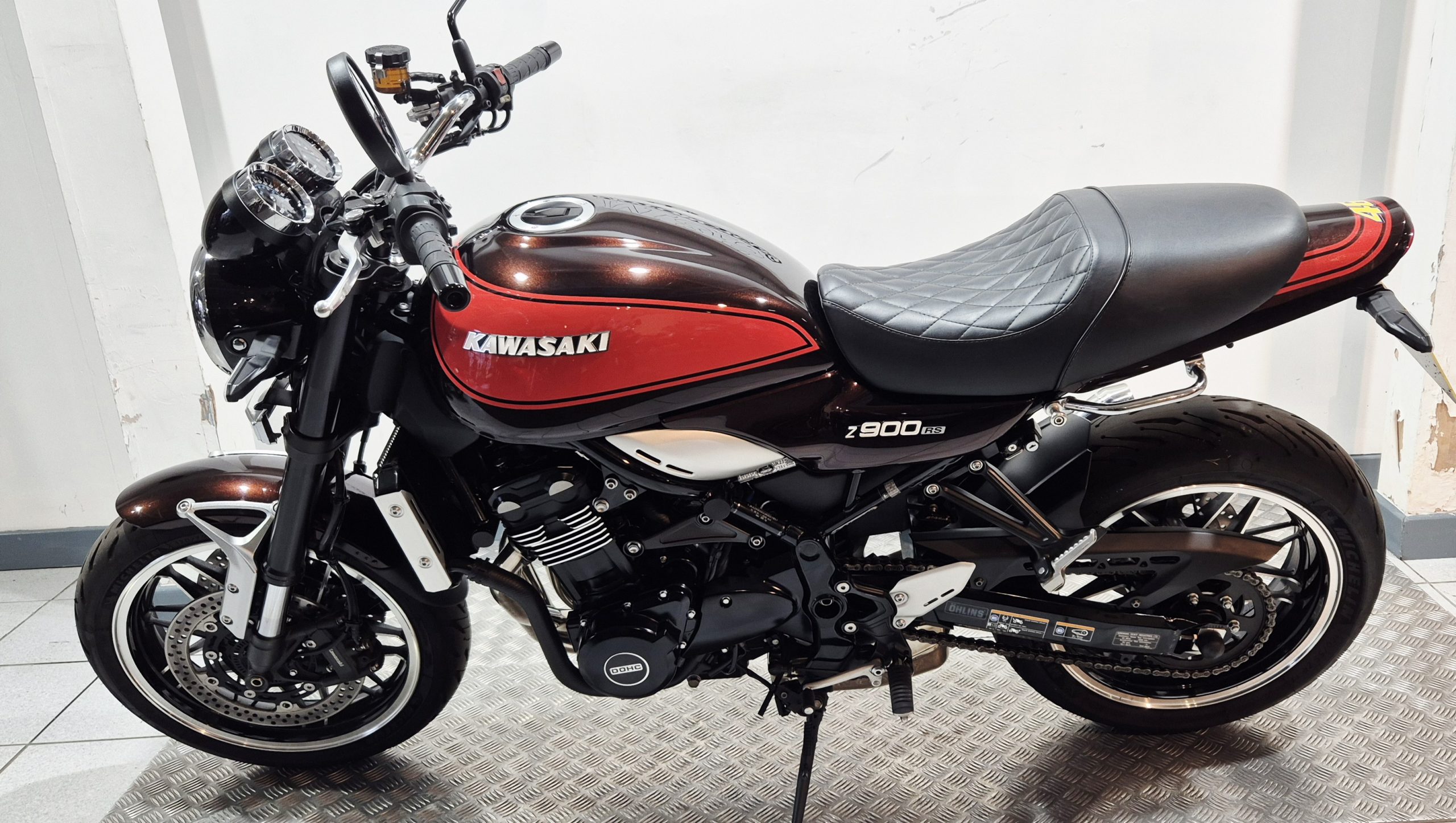 Kawasaki Z900RS in Brown Metallic. One owner from new and having covered only 3942 miles. Registered 01/03/2018. In as new condition and fitted with Ohlins rear shock, comfort seat, tail tidy and radiator guard. Comes with 2 keys and handbook.