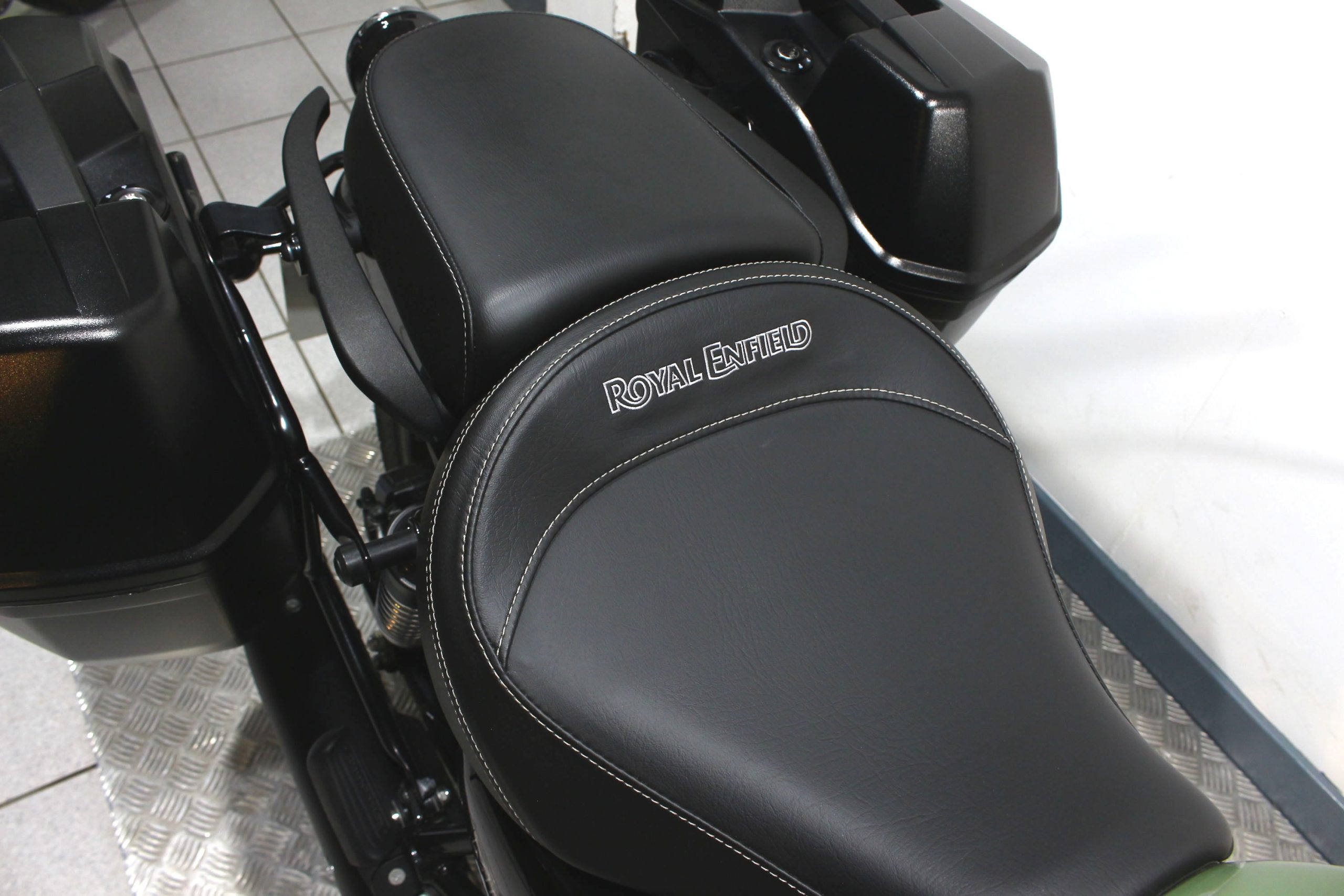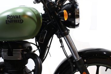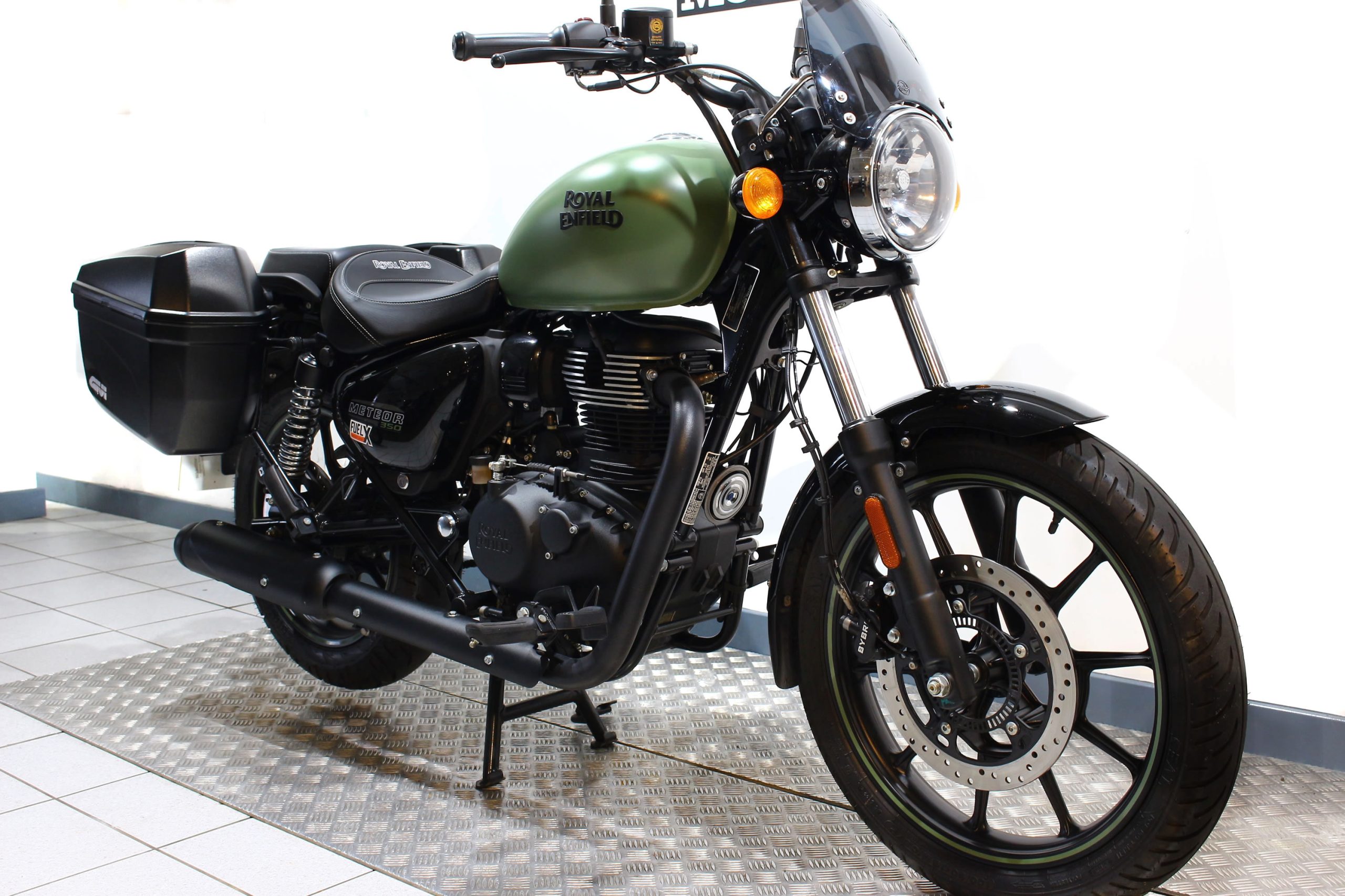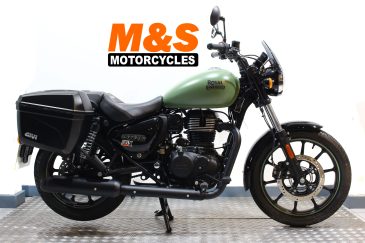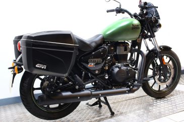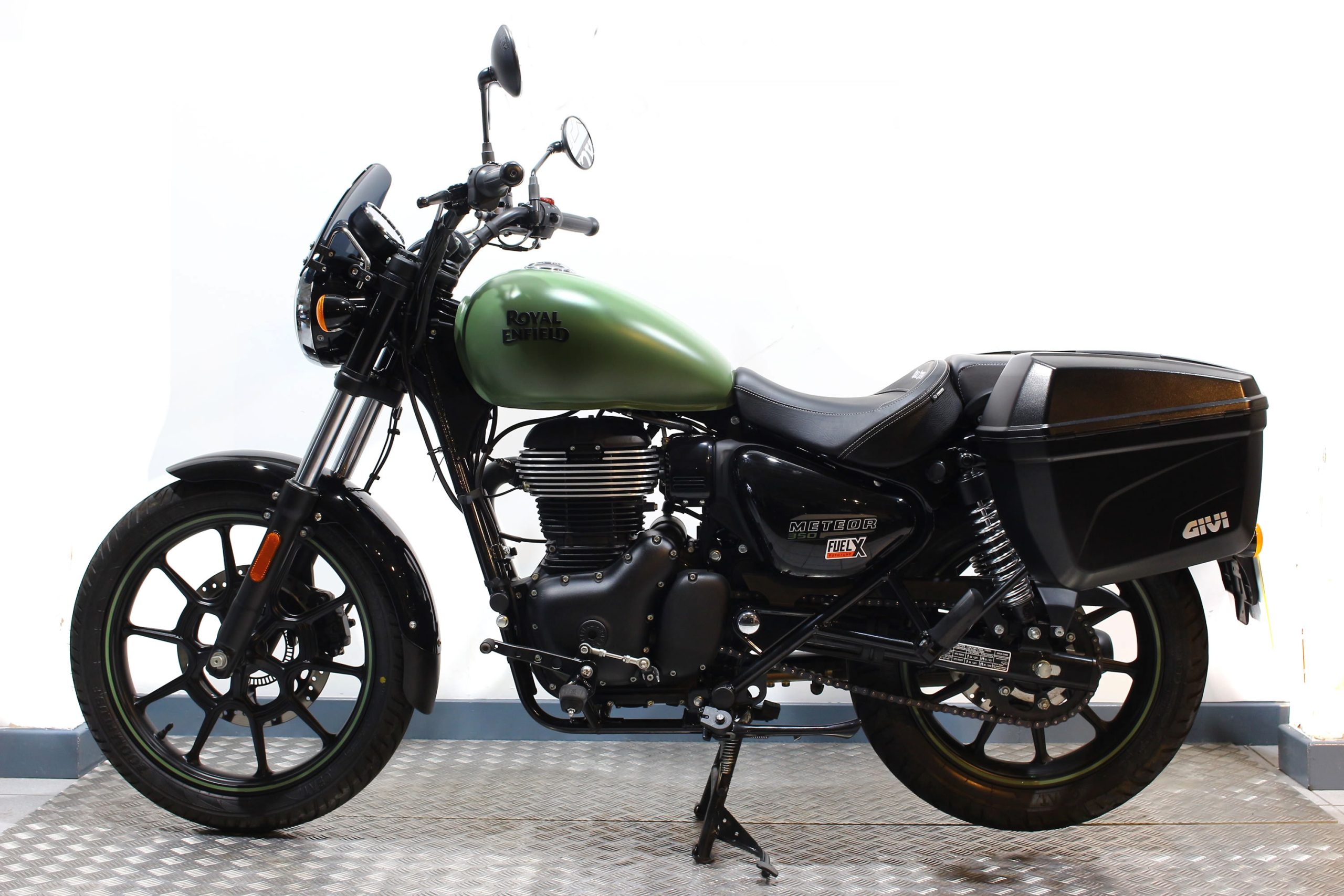 2023 Royal Enfield Meteor 350 in green. Only one owner and very low miles at 1145. Date of registration18/10/2023. Comes with handbook, and 2 keys. With flyscreen, Givi panniers and comfort seat.