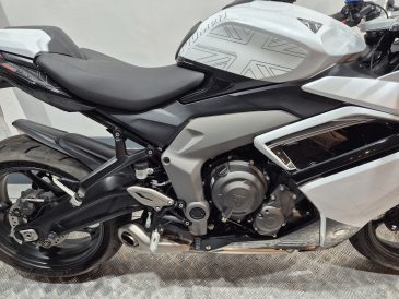 A beautiful example of a Triumph Daytona 660 in white. Only 2 owners from new and having only covered 2948 miles. Comes with quickshifter, heated grips, Triumph tank bag, rear hugger and seat cowl. Fitted with Motografix racing protection kit. Handbook and 2 keys.