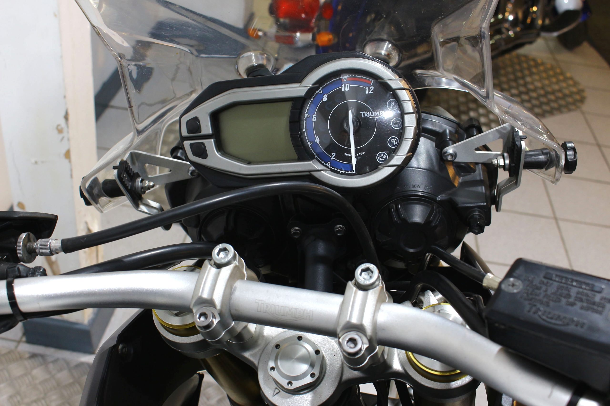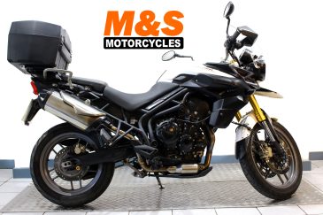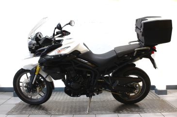 Enquire about thisTriumph Tiger 800 in white. Registered 29/08/2014. Having covered only 19739 miles from new. Comes with handbook, service book, 2 keys, top box, heated grips, handguards, sump guard and radiator guard.