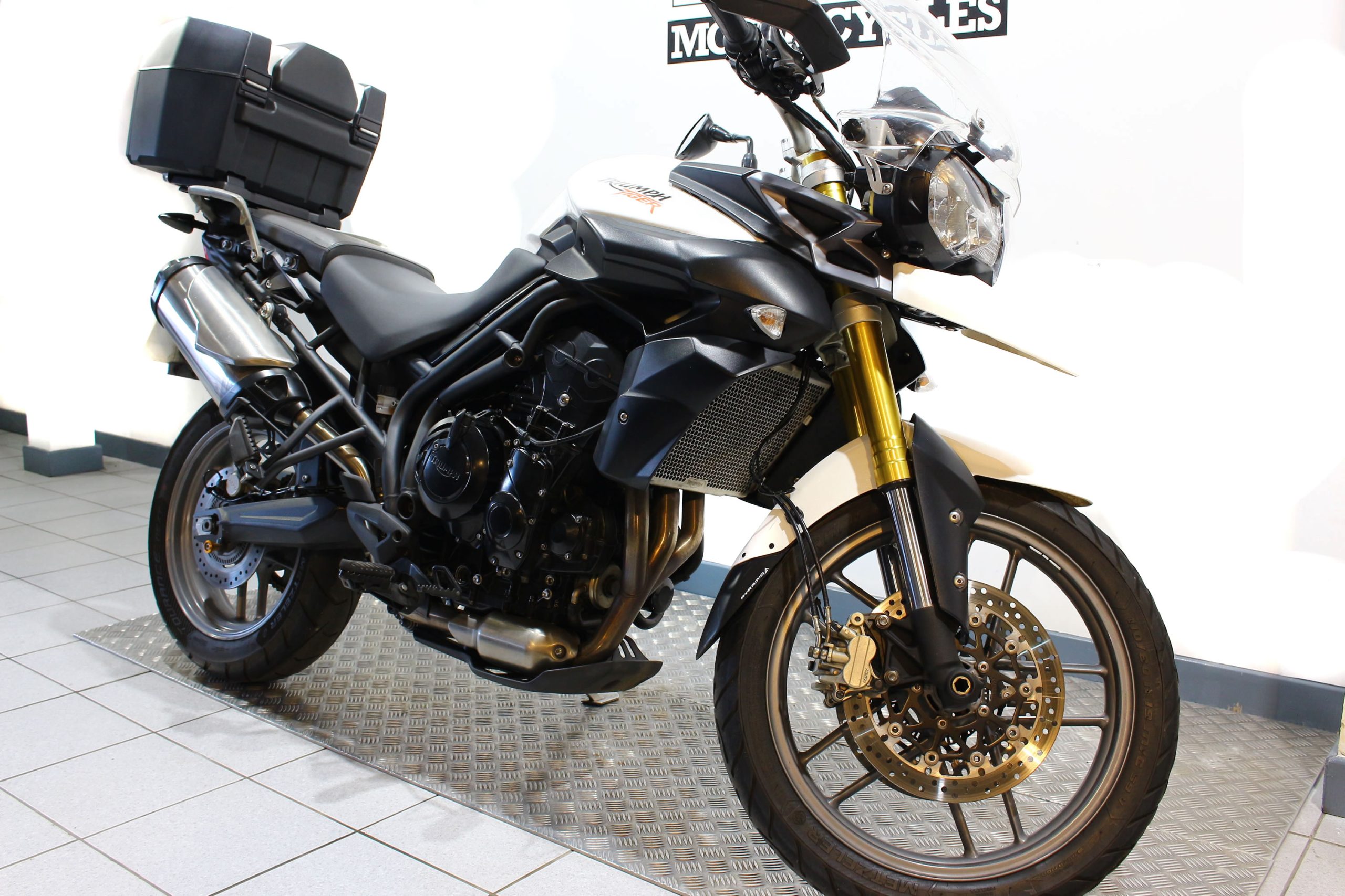 Triumph Tiger 800 in white. Registered 29/08/2014. Having covered only 19739 miles from new. Comes with handbook, service book, 2 keys, top box, heated grips, handguards, sump guard and radiator guard.